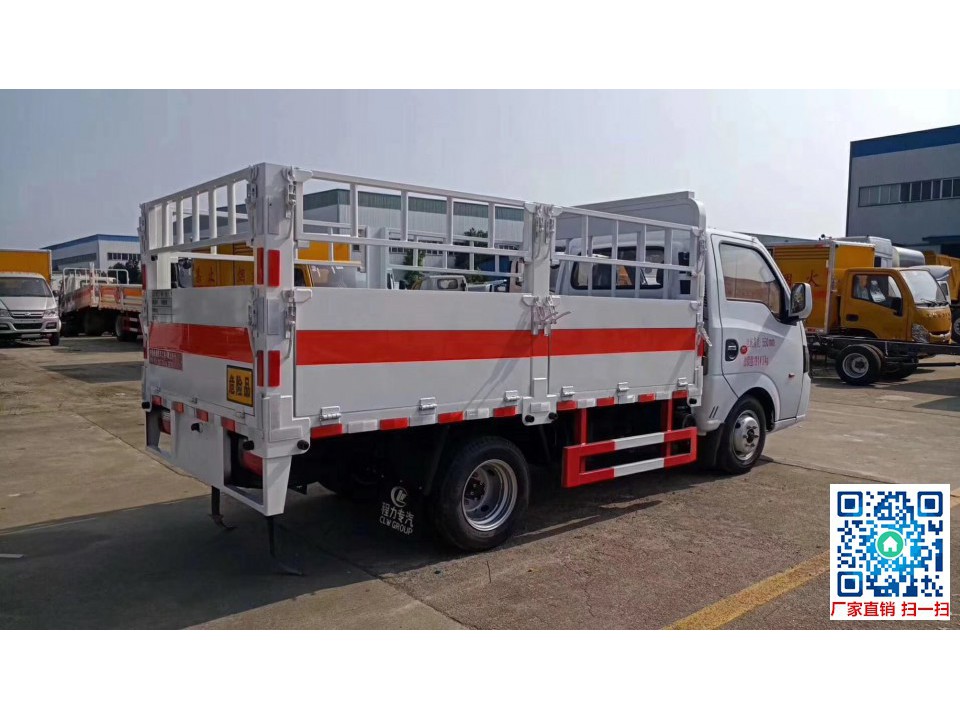 专用配置:边板对折四开门、内衬为矩形管骨架牢靠稳定,底板为3mm厚花纹板,有静电带、灭火器、防火罩。整车国标反光标示及警告标志。