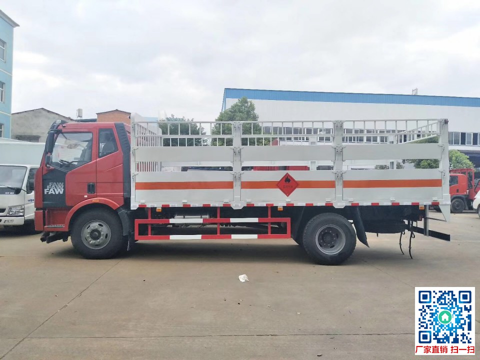 运输介质:具有独立罐(瓶)容器包装的易燃气体:液化石油气,压缩天然气,乙炔,乙烷,丁烷,丁烯,丙烯.甲烷.二甲醚,压缩氢.类项号2.1,运输具有独立容器包装的非易燃无毒气体:二氧化碳,压缩氧. 压缩空气(氮,氦,氩,氖),类项号2.2,该车运输的气瓶盛装介质2.1项易燃气体时,车辆左、右侧及后部粘贴“易燃气体”标示牌,该车运输的气瓶中盛装介质2.2项非易燃无毒气体时,车辆左、右侧及后部粘贴“不燃气体”标示牌。