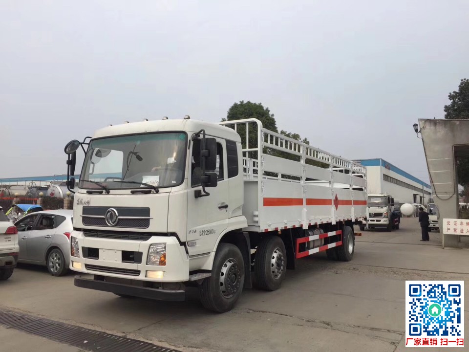东风天锦小三轴气瓶运输车,东风康明斯ISB210马力国五发动机,大同7档变速箱,D530半高顶排半驾驶室,原厂空调,ABS.行车记录仪,5.5吨双前桥(盘式制动)10吨东风德纳后桥,295真空胎,货箱长度8.6米,宽度2.35米,高度0.8米,该车为危险品运输车.选装液压升降尾板,选装液压升降尾板时收起状态的水平长度为300mm.
