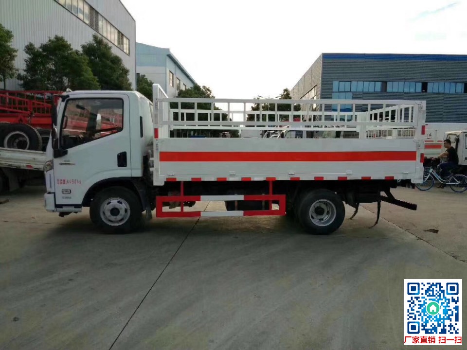 专用配置:边板对折四开门、内衬为矩形管骨架牢靠稳定,底板为3mm厚花纹板,有静电带、灭火器、防火罩。整车国标反光标示及警告标志。