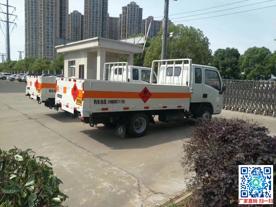 专用配置:边板对折四开门、内衬为矩形管骨架牢靠稳定,底板为3mm厚花纹板,有静电带、灭火器、防火罩。整车国标反光标示及警告标志。