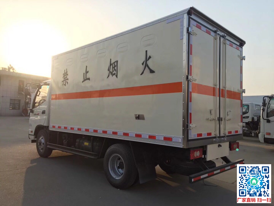 上装配置:1、外板采用1.2mm厚冷轧板有一次性成型的百叶窗2、内饰为导电性能良好的铝板有透气孔3、内衬为矩形管骨架牢靠稳定4、内部填充为透气防潮阻燃的挤塑板5、四种材料经现代工艺复合而成6、厢体外部上下铝合金型材包边7、底板和车厢前下部铺橡胶皮8、后门双开,选装侧开门9、内部有固定货物的卧环10、车辆外部有静电带、灭火器、防火罩11、车厢内安装烟雾报警器和门防盗报警器12、严格按照国家危险品相关法规张贴危险品标识和反光标志等