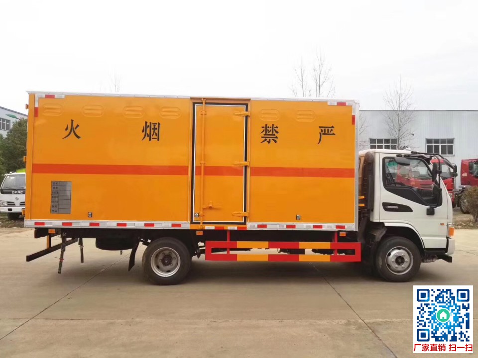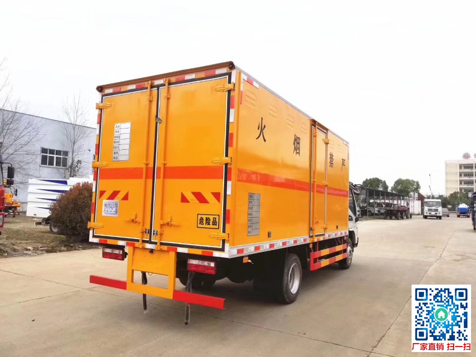 上装配置:1、外板采用1mm厚冷轧板有一次性成型的百叶窗2、内饰为导电性能良好的铝板有透气孔3、内衬为矩形管骨架牢靠稳定4、内部填充为透气防潮阻燃的挤塑板5、四种材料经现代工艺复合而成6、厢体外部上下铝合金型材包边7、底板和车厢前下部铺橡胶皮8、后门双开,选装侧开门9、内部有固定货物的卧环10、车辆外部有静电带、灭火器、防火罩11、车厢内安装烟雾报警器和门防盗报警器12、严格按照国家危险品相关法规张贴危险品标识和反光标志等