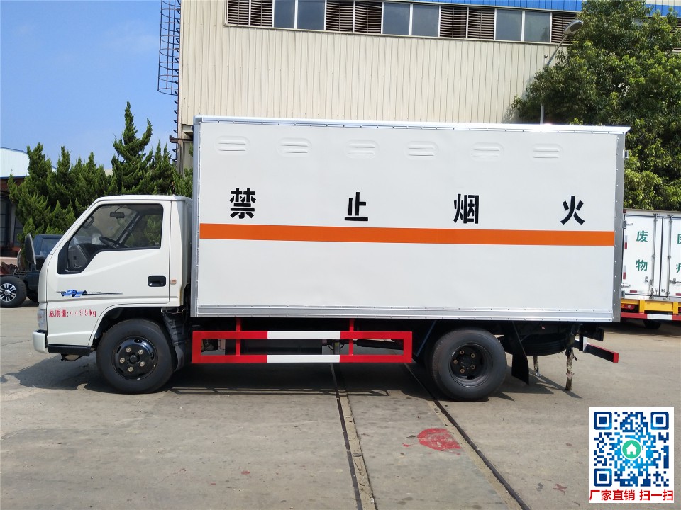 上装配置:1、外板采用1mm厚冷轧板有一次性成型的百叶窗2、内饰为导电性能良好的铝板有透气孔3、内衬为矩形管骨架牢靠稳定4、内部填充为透气防潮阻燃的挤塑板5、四种材料经现代工艺复合而成6、厢体外部上下铝合金型材包边7、底板和车厢前下部铺橡胶皮8、后门双开,选装侧开门9、内部有固定货物的卧环10、车辆外部有静电带、灭火器、防火罩11、车厢内安装烟雾报警器和门防盗报警器12、严格按照国家危险品相关法规张贴危险品标识和反光标志等