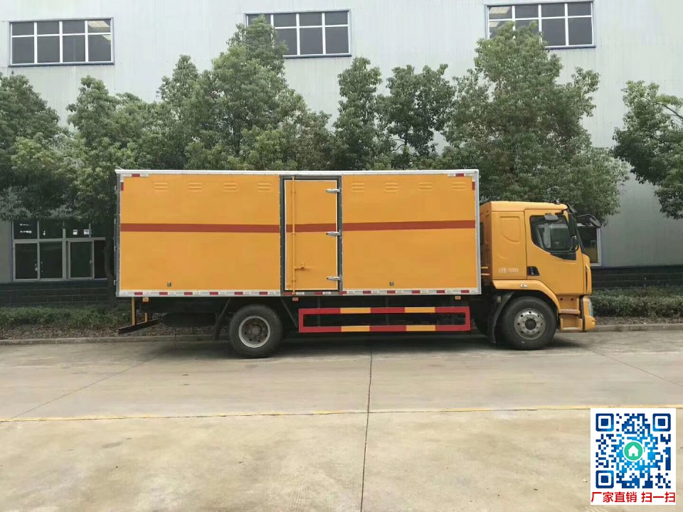 上装配置:1、外板采用1mm厚冷轧板有一次性成型的百叶窗2、内饰为导电性能良好的铝板有透气孔3、内衬为矩形管骨架牢靠稳定4、内部填充为透气防潮阻燃的挤塑板5、四种材料经现代工艺复合而成6、厢体外部上下铝合金型材包边7、底板和车厢前下部铺橡胶皮8、后门双开,选装侧开门9、内部有固定货物的卧环10、车辆外部有静电带、灭火器、防火罩11、车厢内安装烟雾报警器和门防盗报警器12、严格按照国家危险品相关法规张贴危险品标识和反光标志等